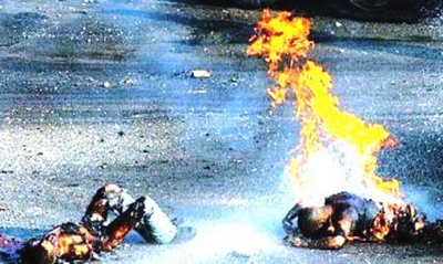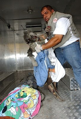Badly burnt body of young Lebanese girl with telltale signs of white phosphorous attack.